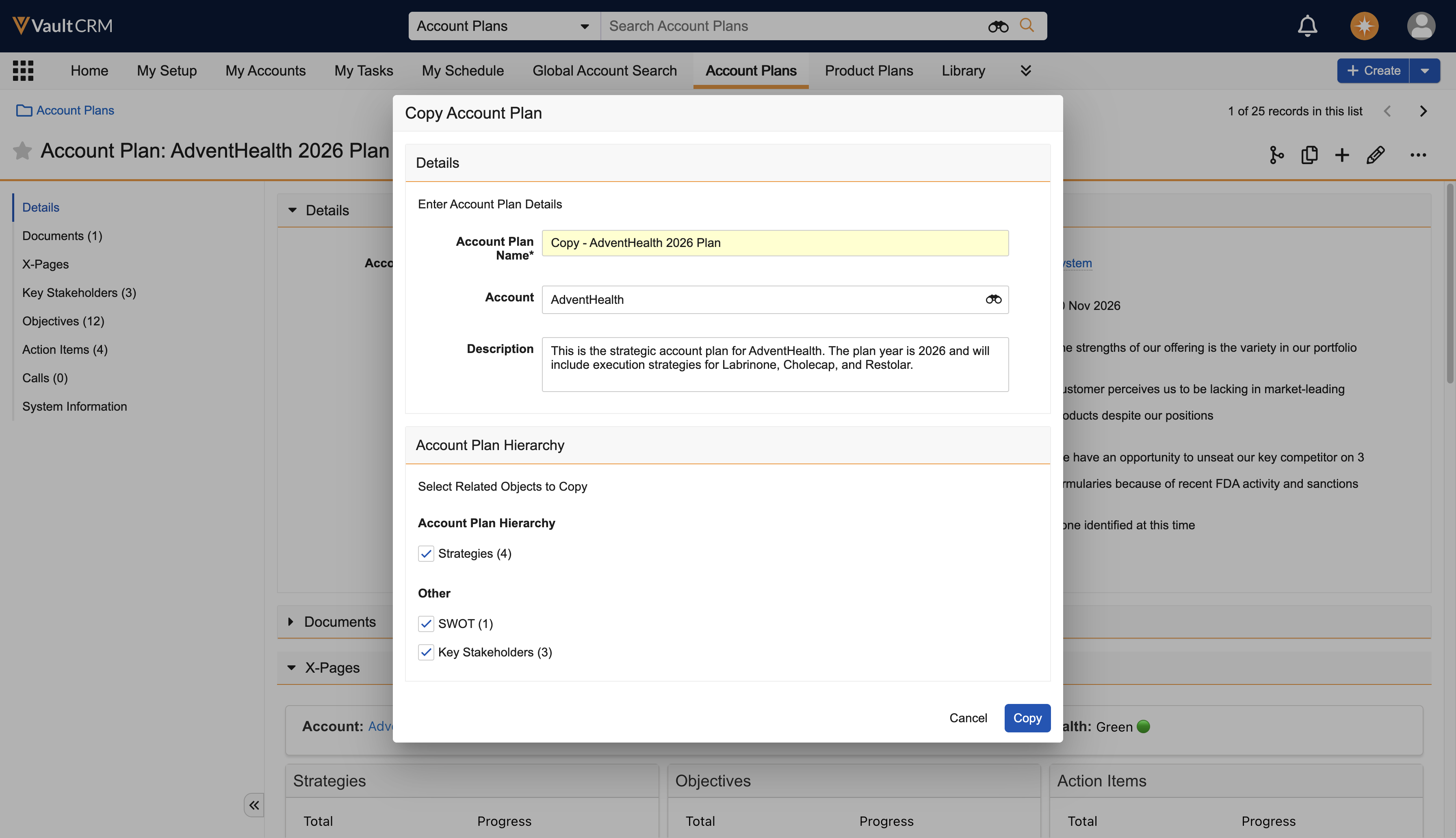 You don't always have to start from scratch. If you have a successful plan from a previous year or a similar account, you can use the Deep Copy feature. This allows you to copy the entire hierarchy—including strategies, objectives, and actions—to a new plan, saving you time on data entry and letting you focus on refining the strategy.