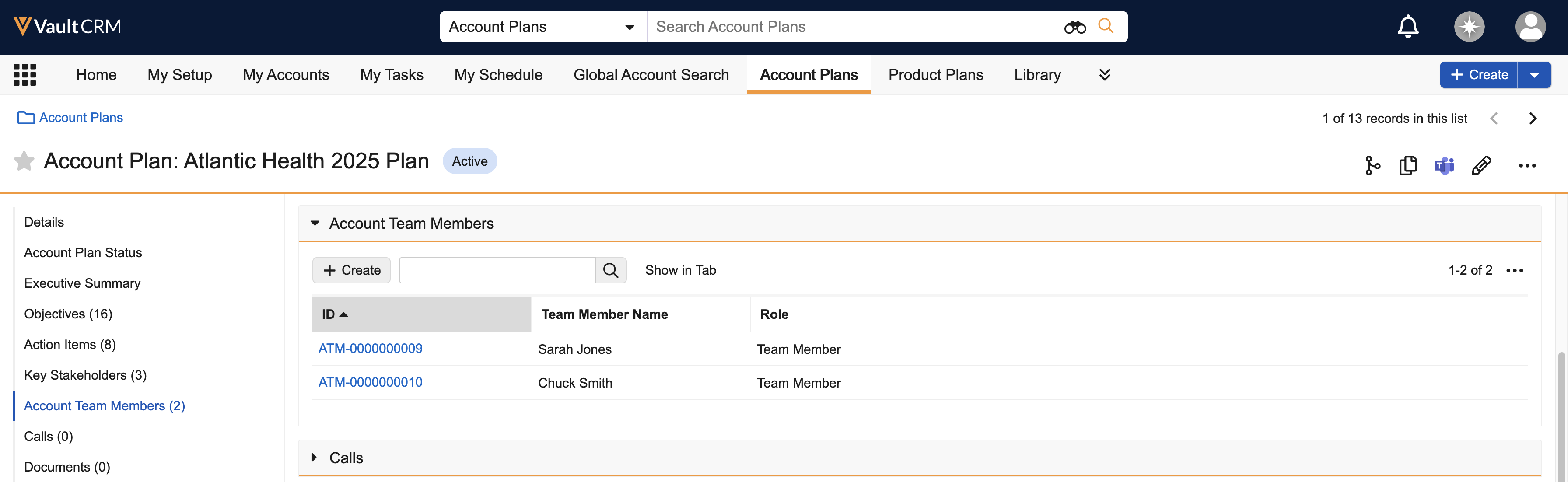 To add a team member to an Account Plan: