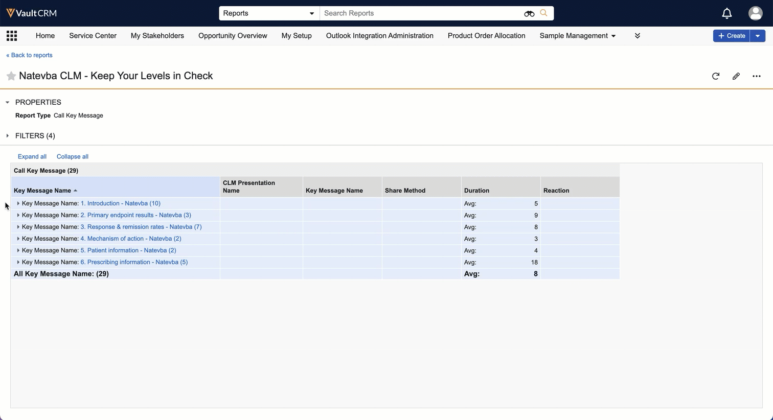 Let’s consider a marketing manager at Verteo BioPharma who wants to check in on the performance of their latest CLM presentation, Natevba - Keep Your Levels in Check. We can create a report to easily see how the presentation and its key messages are performing.