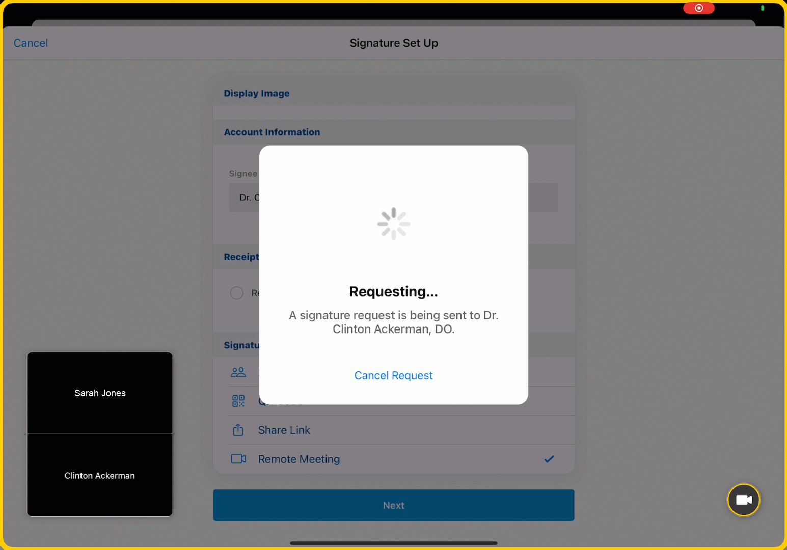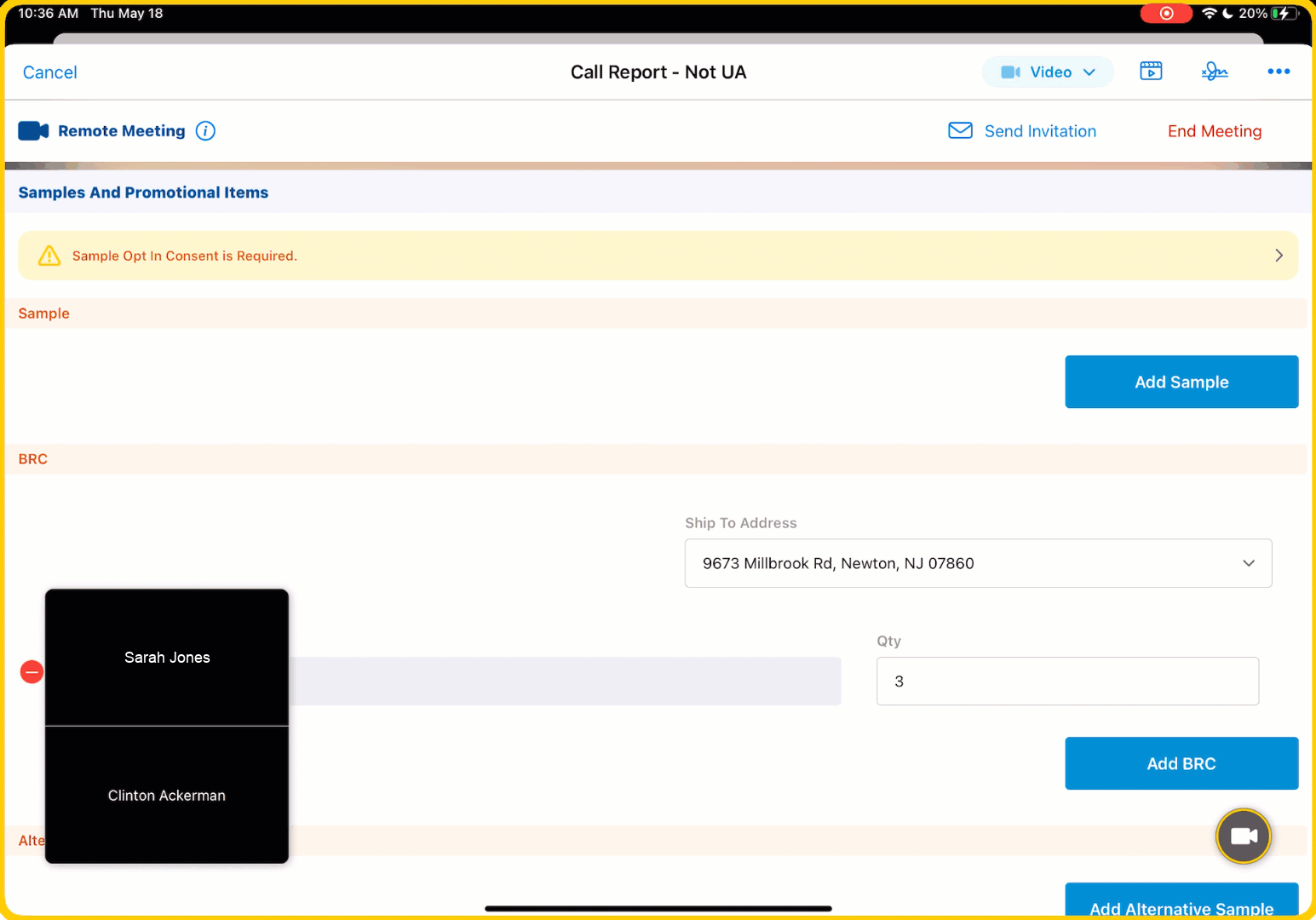 For example, you’re hosting an Engage meeting with an HCP who requests BRCs from you. You add the samples to the call report and send a signature request.