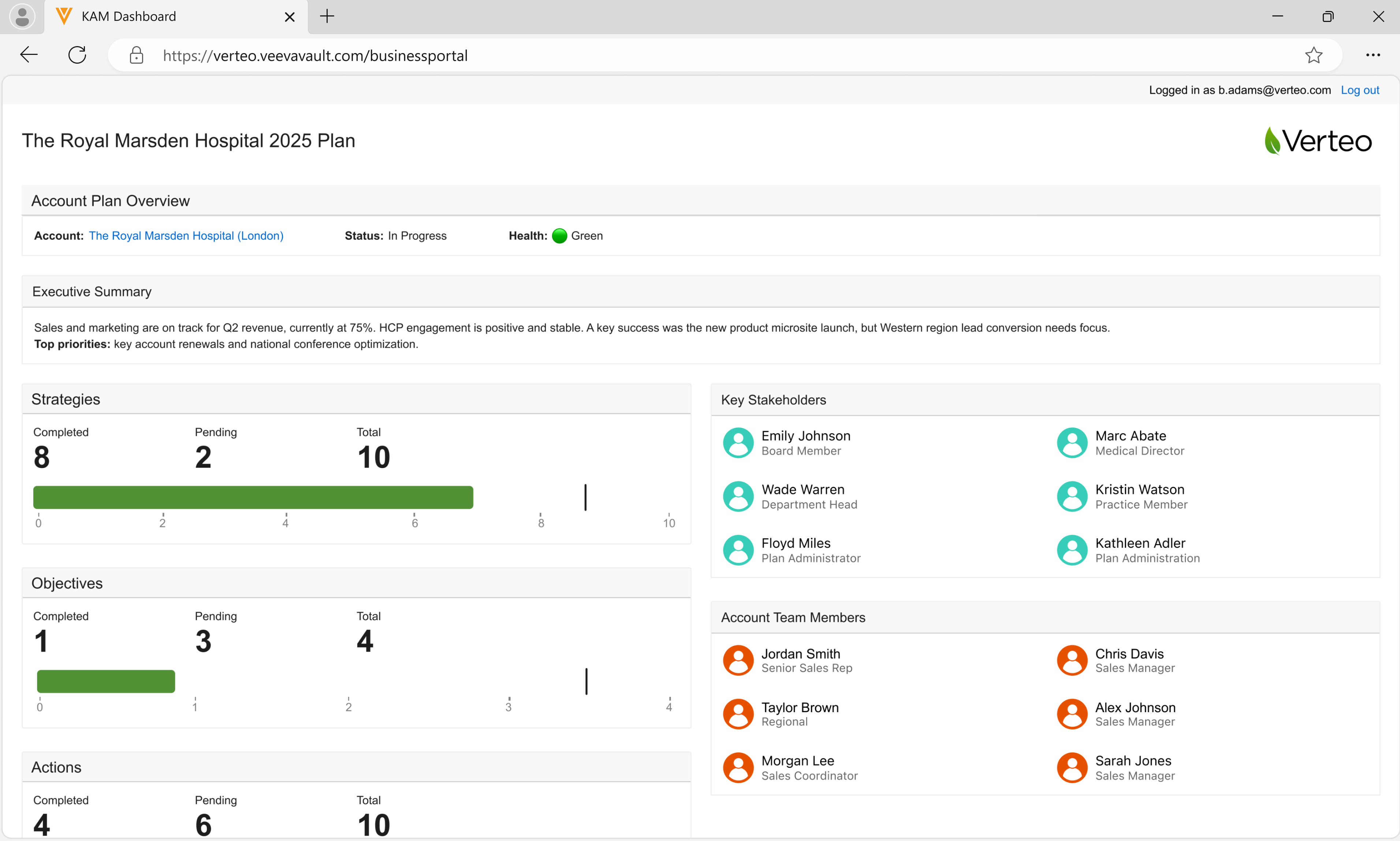 - Status counts for Strategies, Actions, and Objectives